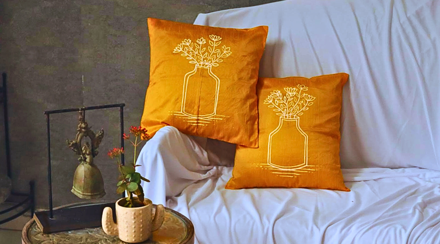 Ziya-e-Falak Hand-Painted Cushion Cover